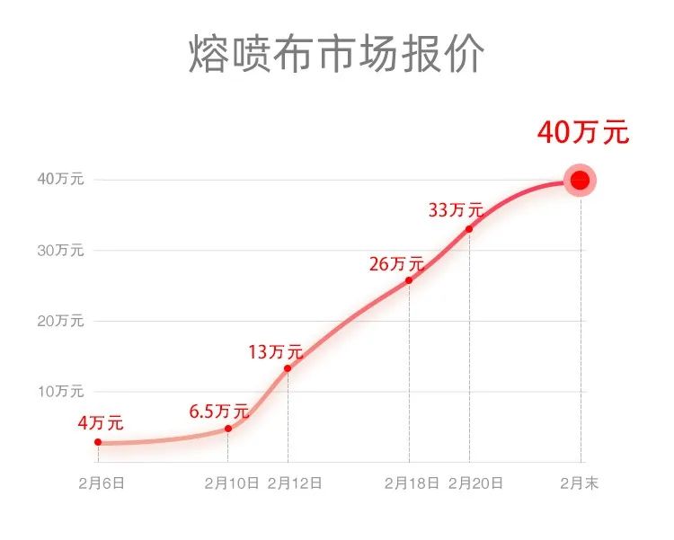 这条被业内人士称为“达到极致市场行情”、不断上扬的价格曲线,代表了国内一吨熔喷布实时的市场报价,无疑,它正紧紧扼住了口罩扩大产能的咽喉。